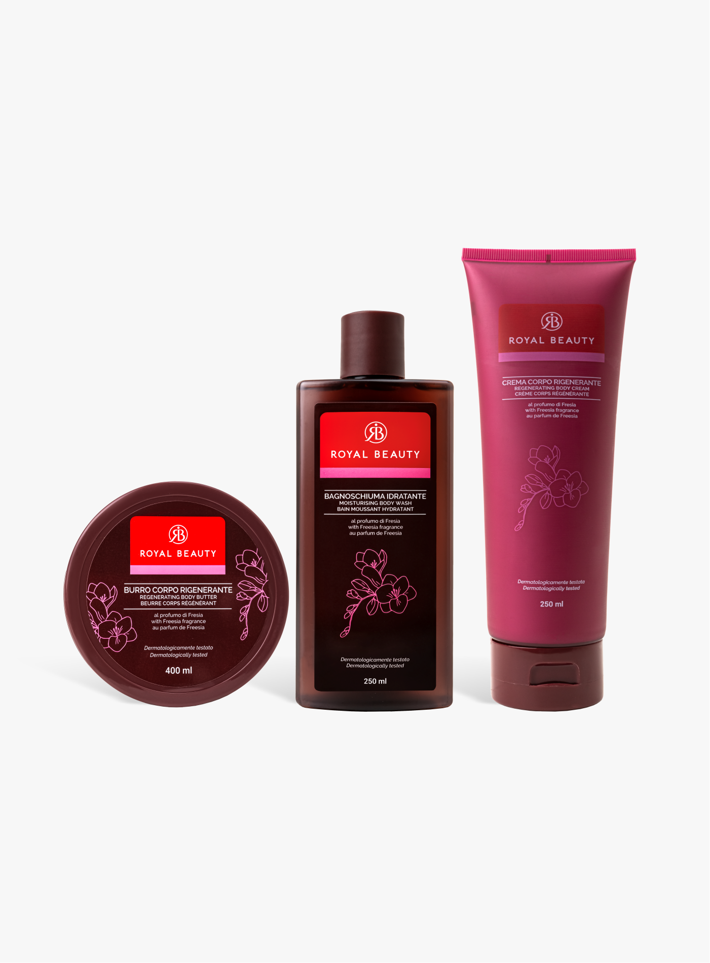 BAGNOSCHIUMA: Aqua (Water), Sodium Laureth Sulfate, Sodium Chloride, Cocamide Methyl MEA, Parfum (Fragrance), Cocamidopropyl Betaine, Benzyl Alcohol, Glycerin, Cocos Nucifera (Coconut) Oil, Disodium EDTA, Helianthus Annuus (Sunflower) Seed Oil, Citric Acid, PEG-50 Shea Butter, Methylchloroisothiazolinone, Magnesium Nitrate, Boswellia Carterii Resin Extract, Magnesium Chloride, Methylisothiazolinone.<br><br>BURRO CORPO: Aqua (Water), Stearic Acid, Cetearyl Alcohol, Glyceryl Stearate, Paraffinum Liquidum, Butyrospermum Parkii Butter, Ethylhexyl Palmitate, Phenoxyethanol, Ammonium Polyacrylate, PEG-100 Stearate, Parfum (Fragrance), C13-16 Isoparaffin, Laureth-30, Carbomer, Chlorphenesin, PEG-40 Sorbitan Stearate, Potassium Cetyl Phosphate, Disodium EDTA, Corylus Avellana (Hazelnut) Seed Oil, Mangifera Indica (Mango) Seed Butter, Limonene, Hexyl Cinnamal, Linalool.<br><br>CREMA CORPO: Aqua (Water), Paraffinum Liquidum, Stearic Acid, Phenoxyethanol, Cetearyl Alcohol, Carbomer, Glyceryl Stearate, Parfum (Fragrance), Chlorphenesin, PEG-40 Sorbitan Stearate, Potassium Cetyl Phosphate, Sodium Hydroxide, PEG-100 Stearate, Disodium EDTA, Butyrospermum Parkii Butter, Limonene, Hexyl Cinnamal, Linalool.