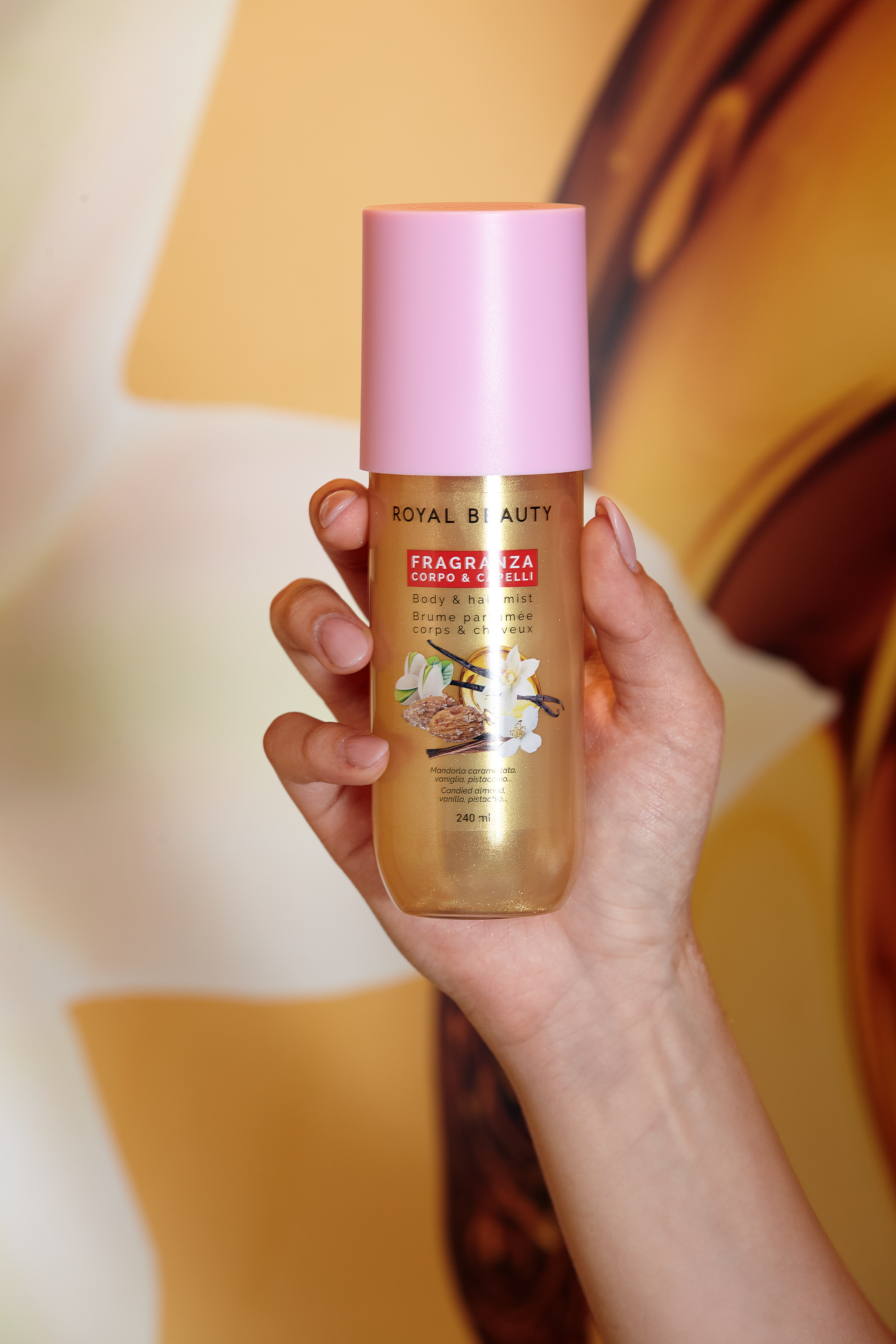 - Capelli: eroga 1-2 spruzzi sulla mano e distribuisci delicatamente sulle lunghezze o sulle punte per donare lucentezza e una profumazione avvolgente senza appesantire.